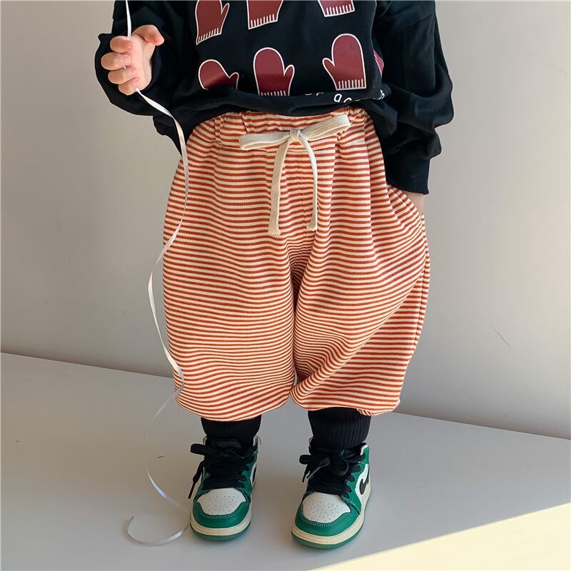 お勧め 春夏新作 男女 ワイドパンツ 九分丈ズボン ボーダー柄 韓国風子供服 ジョガーパンツ2色 80-130