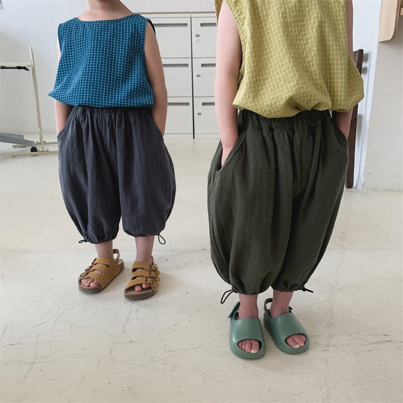 お勧め 春夏新作 男女 ワイドパンツ 七分丈ズボン サルエルパンツ 韓国風子供服 レトロ 麻綿2色 80-130