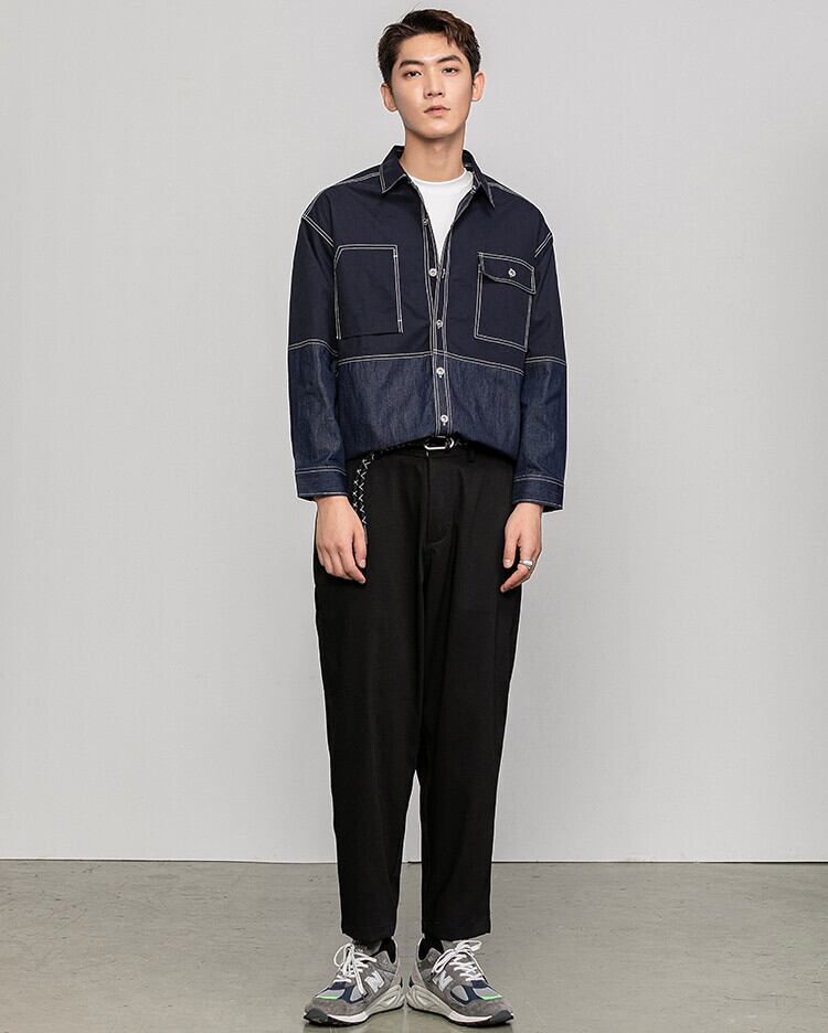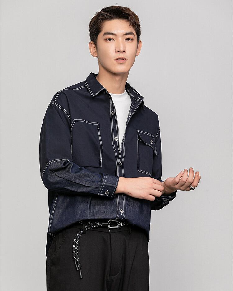 [緊急タイムセール!!]韓国ファッション ステッチ デニム シャツ 百掛け ゆったりする 上品映え